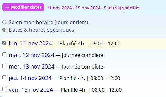 Double-click (double-tap) a date in the dates panel to modify times for that date only.